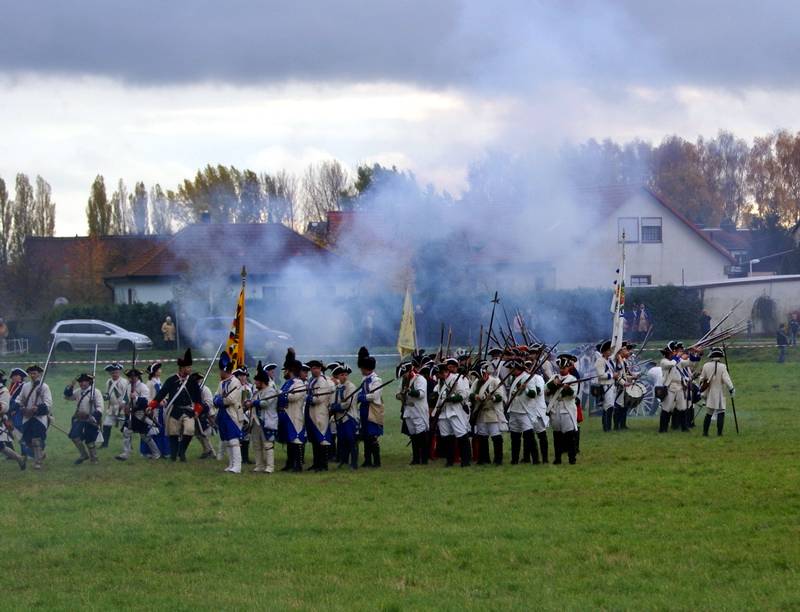 Zur Historie: Wie allgemein bekannt, glaubte jeder der damaligen Kriegsparteien die anderen Streitkräfte im Marsch zu überraschen bzw. dem Marsch des Gegners zu folgen. Der preußische Kavallerieangriff auf die sich noch nicht in Schlachtordnung aufgestellten Franzosen und Reichsarmee brachte den Sieg für Preußen. Kurz gesagt: Die Reichsarmee wurde im Marsch überrascht.
