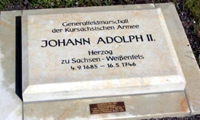 Jens Fischer, der Ideengeber und Initiator des Weißenfelser Barockfestes ist auch der Urheber der Gedenkplatte für Johann Adolph II, die wir heute einweihen. Johann Adolph II. war der letzte im Reigen der fünf Weißenfelser Herzöge, die in wenigen Jahren das Gesicht der Stadt grundlegend veränderten und Weißenfels an der Wende vom 17. zum 18. Jahrhundert zu einer Kulturstadt von europäischem Rang erhoben. Johann Adolph II., der als 1685 als letzter der elf Kinder des zweiten Weißenfelser Herzogs geboren wurde, rechnete wohl nie damit, zum regierenden Herzog zu werden. Dementsprechend ging er den Weg, der für viele Prinzen der Zeit typisch war und wurde Soldat. Soldat ist sicherlich reichlich untertrieben, er schaffte es zum Generalfeldmarschall und Oberbefehlshaber der sächsischen Armee im ersten und zweiten Schlesischem Krieg. Als er nach dem Tod seines Bruders Christian 1736 dann die Regentschaft des Fürstentums antritt, kommen ihm die militärischen Tugenden sicherlich zugute. Durch einen strengen Sparkurs schafft er es, die Finanzen soweit zu sanieren, dass die Schuldentilgungskommission nach zwanzig Jahren aufgelöst werden kann. Es scheint zur damaligen Zeit für Herzöge eher die Ausnahme gewesen zu sein, den ein zeitgenössischer Beobachter bebt es ausdrücklich hervor, wenn er sagt: „Er war sehr sparsam und hatte in allem eine musterhafte Ordnung. Durch seine Hand ging alles, alle Rechnungen beglich er selbst. Er kehrte nie den Prinzen heraus, sonder ließ ich, besonders von Fachleuten über alles belehren.“ Hier sollte er für einige Politiker ein Vorbild sein.