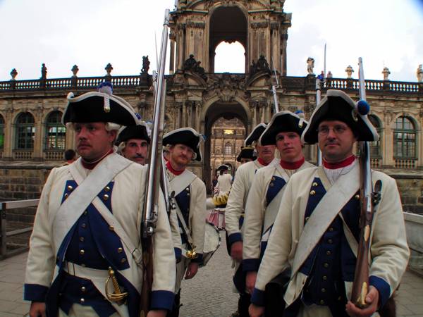 Blicken wir kurz zurück. 1694 starb der sächsische Kurfürst Johann Georg IV. an den Blattern. Zur Regierung kam unvorhergesehen sein Bruder Kurfürst Friedrich August I., später „August der Starke“ genannt, Kurfürst von Sachsen (1694-1733) und König von Polen (1697-1733). Mit der Personalunion zwischen dem Kurfürstentum Sachsen und dem Königreich Polen hatte er in Europa einen Machtfaktor geschaffen. Nach dem Ende des Nordischen Krieges trat in Sachsen eine erfolgreiche wirtschaftliche Entwicklung ein, das es neben den anderen europäischen Mächten, wie Österreich, Frankreich, England und Russland, als gleichberechtigten politischen Partner treten ließ. Mit Preußen als nördlichen Nachbarn und direkten Konkurrenten von Sachsen kam es in der Folgezeit zunehmend zu Differenzen. 1733 verstarb August I. in Warschau. Sofort entbrannte die Auseinandersetzung um das polnische Erbe. Im Erbfolgestreit setzte sich der Thronfolger August des Starken, sein Sohn Friedrich August II. mit Hilfe Russlands und durch Tolerierung Österreichs durch und wurde 1733 zum polnischen König gewählt. Eines der wichtigsten Ziele Sachsens bestand darin, eine direkte Landverbindung zwischen dem Kurfürstentum und Polen zu gewinnen. Mit diesem Ziel kam es in die Auseinandersetzung zwischen Preußen und Österreich. Für eine dieser beiden Parteien musste Kursachsen sich entscheiden. 1740 besetzte König Friedrich II. von Preußen kurz nach seinem Regierungsantritt Schlesien. Damit begann der 1. Schlesische Krieg (1740-1742) gegen Österreich, mit Sachsen als Bündnispartner auf preußischer Seite. Im Frieden von Berlin sicherte sich Friedrich II. „sein“ Schlesien. Sachsen ging leer aus. Als Trost erhielt es Mähren zugesprochen. Das Nichterfüllen der sächsischen Wünsche führte zu einer Änderung der Politik gegenüber Preußen, und trieb Sachsen an die Seite Österreichs. Im August 1744 brach mit dem Einmarsch preußischer Truppen in Böhmen der 2. Schlesische Krieg (1744-1745) aus, der mit der entscheidenden Schlacht bei Kesselsdorf am 15. Dezember 1745 und der empfindlichen Niederlage der Sachsen, sein Ende finden sollte. In den Schlachten von Hohenfriedberg am 04. Juni 1745 und Soor am 30. September 1745 musste das sächsisch-österreichische Heer empfindliche Niederlagen einstecken und konnte den Einmarsch preußischer Truppen nach Sachsen im November 1745 nicht verhindern.